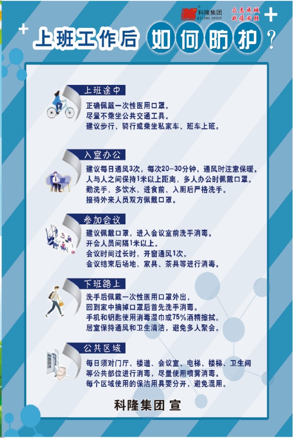 新冠肺炎疫情發(fā)生以來,國內(nèi)企業(yè)生產(chǎn)經(jīng)營發(fā)展受到較大影響,面臨形勢相當嚴峻。2月8日,國務院聯(lián)防聯(lián)控機制印發(fā)通知,對切實加強疫情科學防控、有序做好企業(yè)復工復產(chǎn)工作作出安排部署。為確保科隆集團生產(chǎn)經(jīng)營和疫情防控工作兩不誤,集團各單位快速反應、馬上行動,成立“疫情防控復工小組”,展開復工和疫情防控專題工作計劃,努力推動企業(yè)恢復正常生產(chǎn)經(jīng)營,為社會經(jīng)濟發(fā)展提供支撐、做好保障。